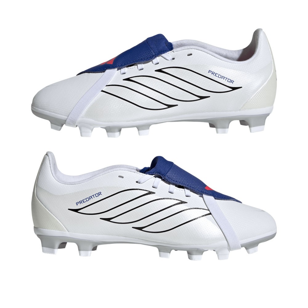 Progettate per i giocatori in crescita, le scarpe da calcio ADIDAS Predator Club uniscono stile iconico e funzionalità. La caratteristica linguetta ripiegabile crea una superficie di tiro più liscia, migliorando precisione e sensibilità a ogni contatto con il pallone.