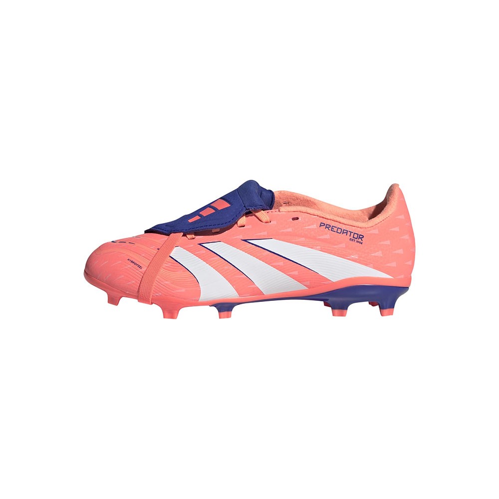 Scopri la differenza tra l'obiettivo di segnare e la certezza di farlo con le Adidas Predator League, scarpe da calcio junior create per trasformare ogni occasione in gol. La tomaia Hybridfeel presenta una texture 3D all-over che migliora la sensibilità con il pallone, mentre le alette Strikescale aumentano il grip per tiri precisi e decisi.