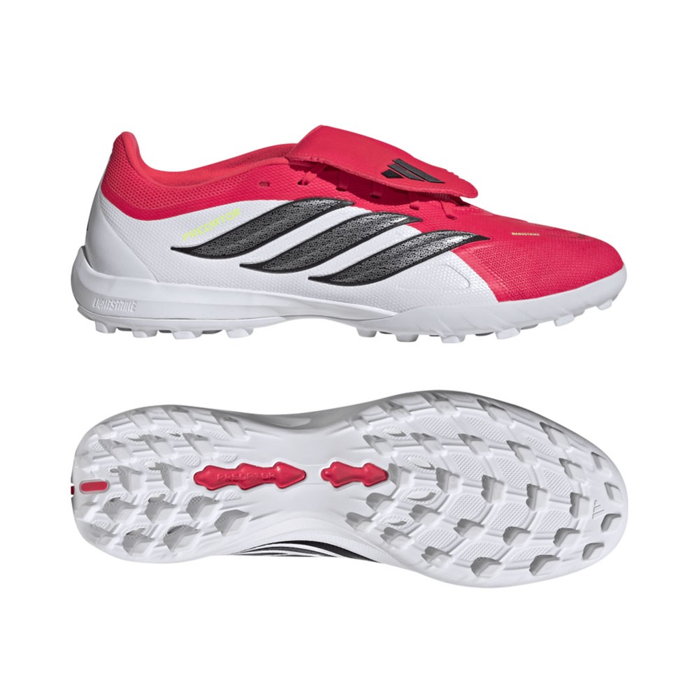 Con calzata regolare e chiusura con lacci, queste scarpe offrono stabilità e praticità. La suola in gomma specifica per Turf garantisce la trazione indispensabile su erba sintetica e campi duri, per prestazioni costanti e movimenti rapidi.