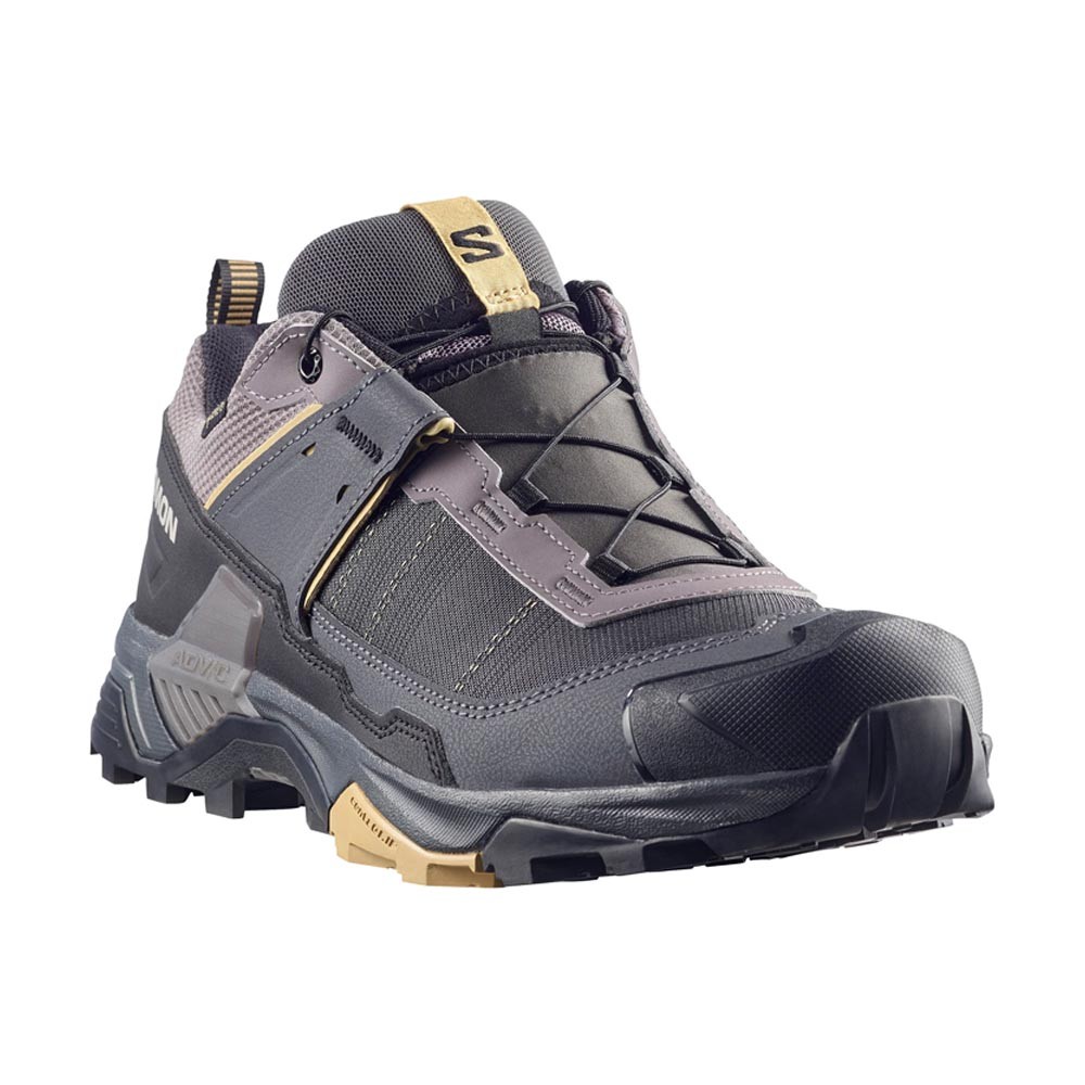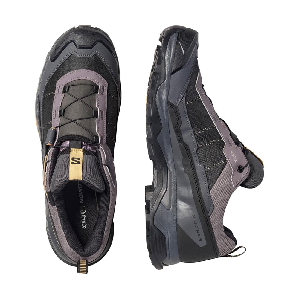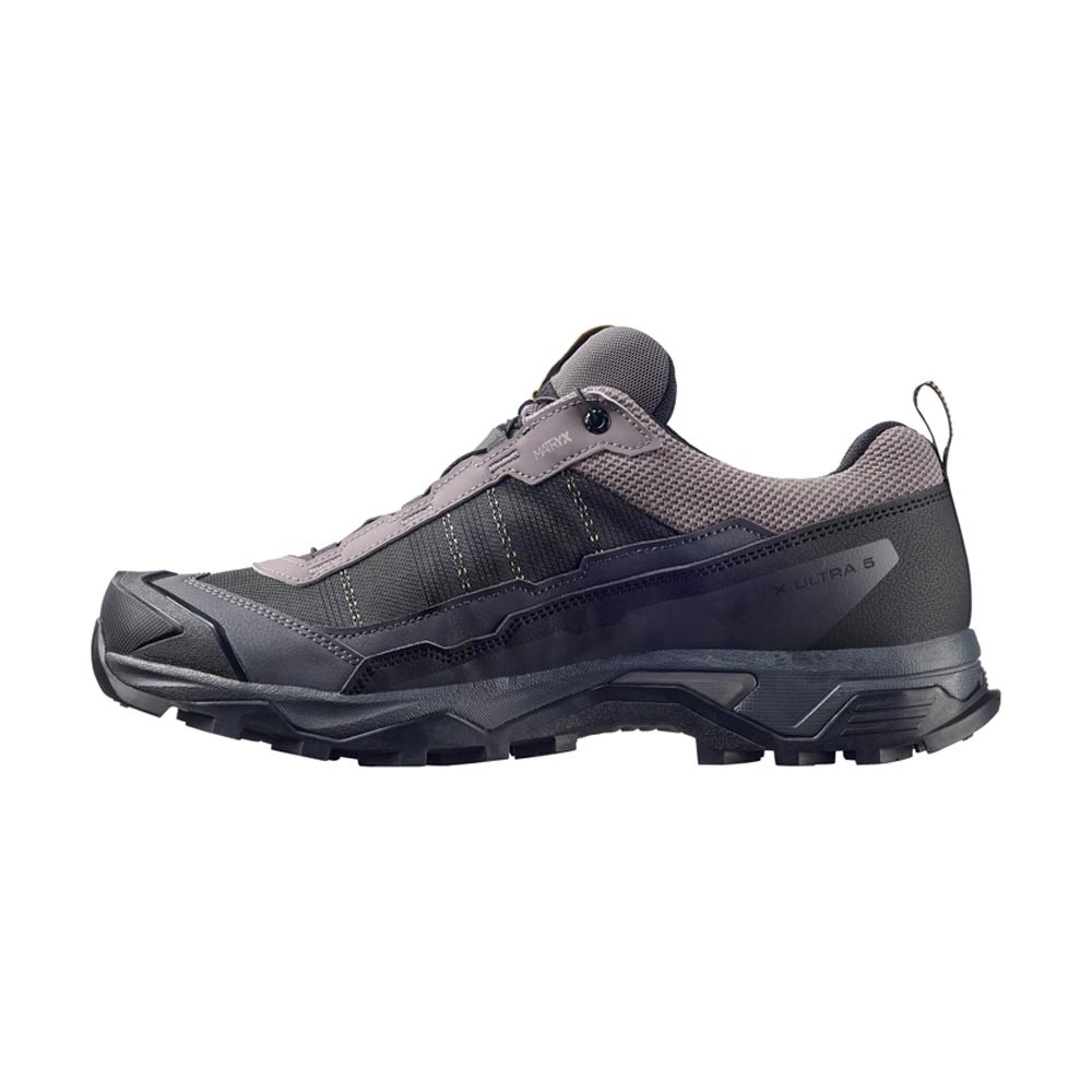 Leggera ma instancabile, la Scarpe Trekking X Ultra 5 GORE-TEX Salomon uomo in tomaia Matryx con filato tecnico e Kevlar ad alta tenacità combina protezione impermeabile GORE-TEX, intersuola EnergyCell e suola All Terrain contaGRIP per grip affidabile su qualsiasi terreno. Il sistema advancedCHASSIS, la calzata sensiFIT con Active Support e la soletta OrthoLite completano una scarpa da 380 g agile e stabile su salite e discese impegnative.