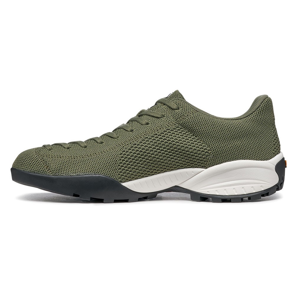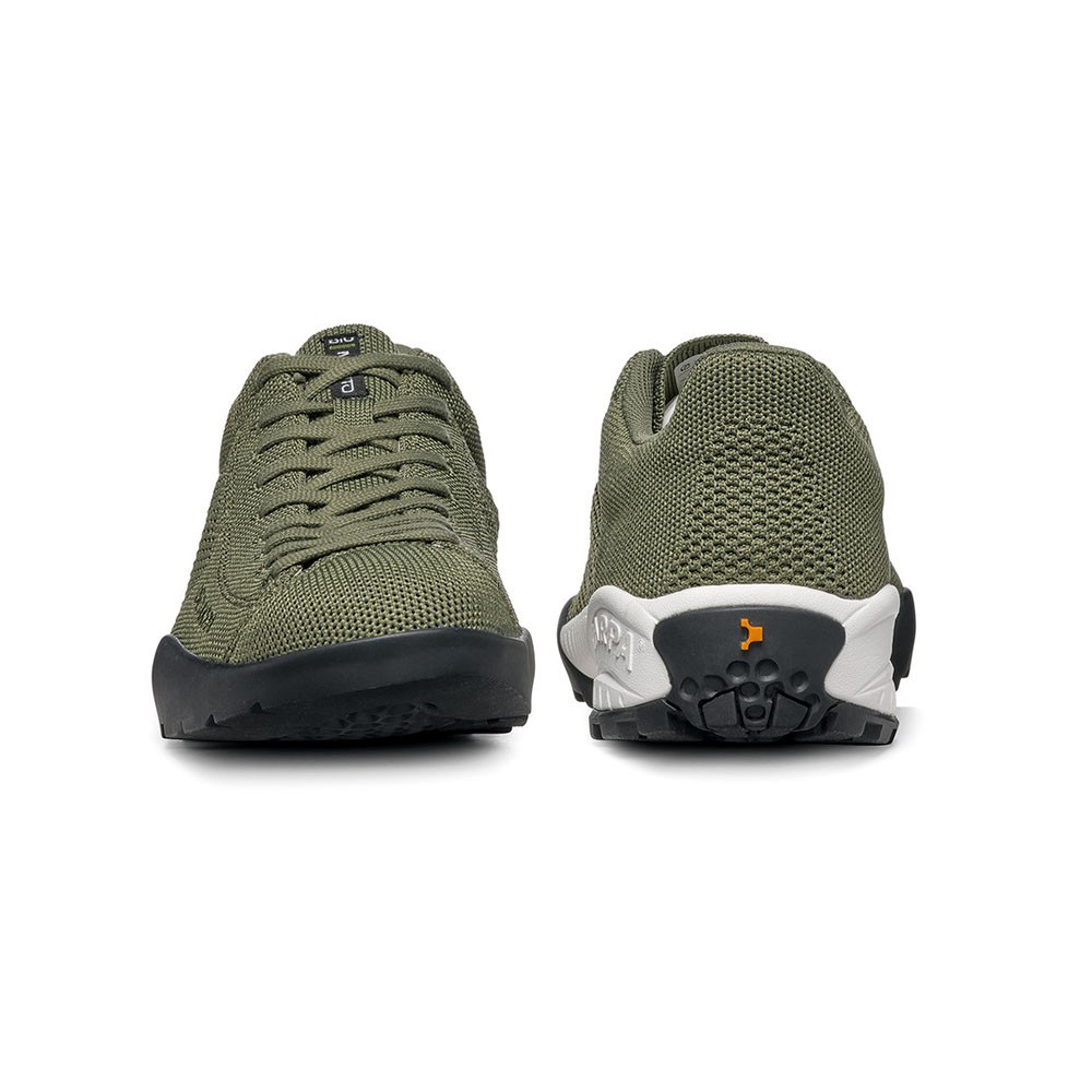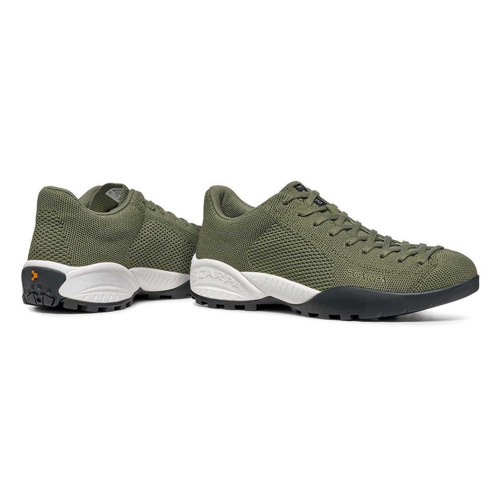 Scarpe montagna realizzate con tomaia in PET filato con tecnologia knit, senza scarti di produzione. Anche il packaging è realizzato con carte certificate FSC. L'allacciatura delle Scarpa Mojito è extended Lacing estesa fino in punta di derivazione climbing, per massima personalizzazione e comfort di calzata.