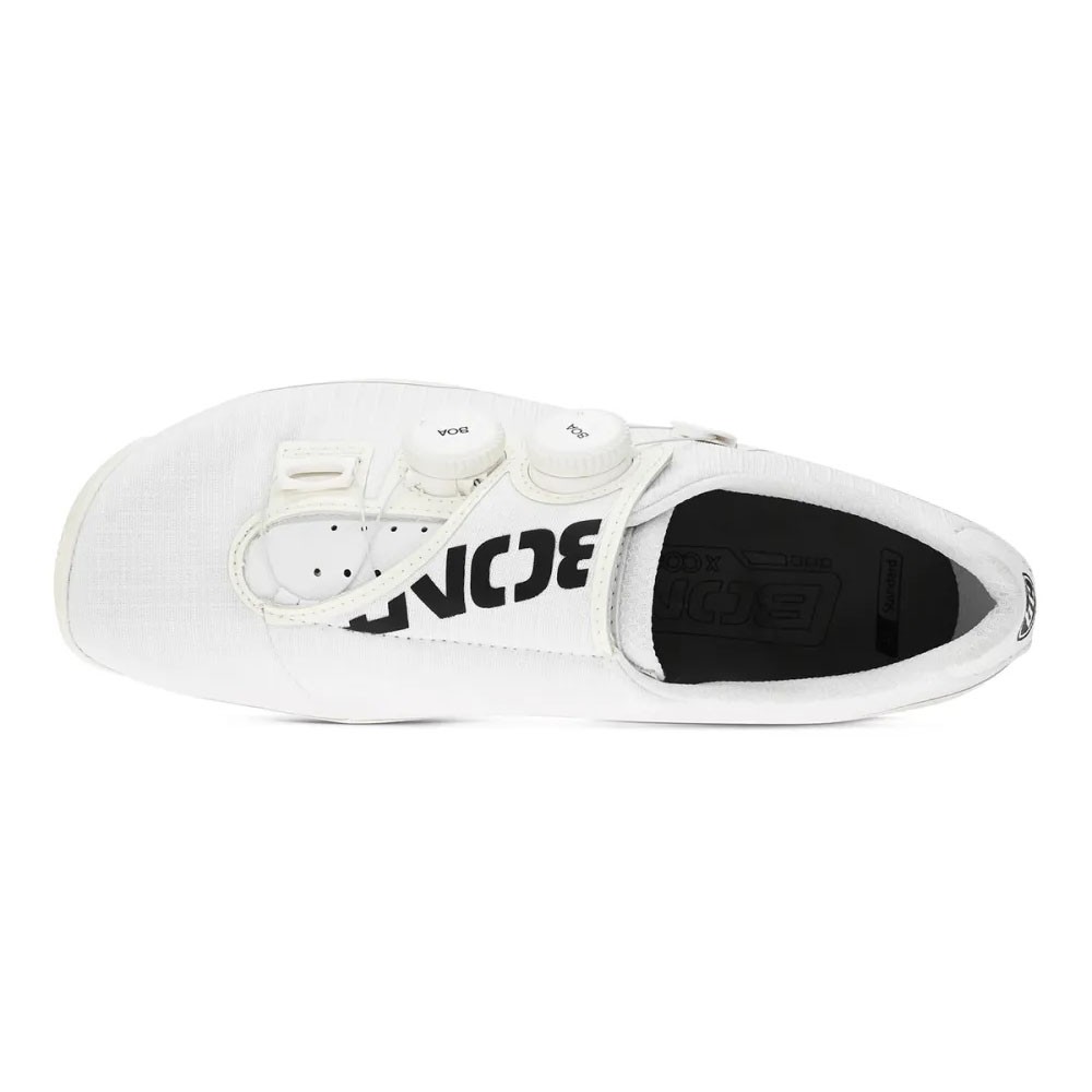 La costruzione in fibra di carbonio unidirezionale Toray garantisce rigidità e trasferimento di potenza ottimale, mentre l’altezza stack di soli 3,6 mm avvicina il piede al pedale migliorando controllo e fluidità. La tomaia in Tech Mesh ultraleggero assicura traspirabilità e comfort, adattandosi al piede anche nelle uscite più lunghe.