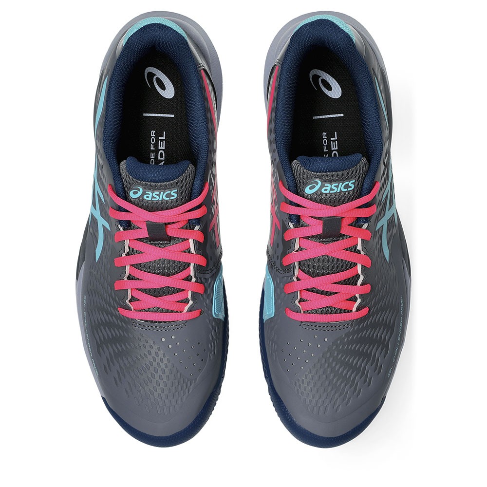 Le scarpe padel Asics Gel-Challenger 14 Metropolis Energy Aqua sono progettate per giocatori che necessitano di stabilità e controllo nei movimenti. La tomaia rinforzata mantiene il piede ben saldo sulla piattaforma, offrendo supporto nei movimenti in avanti e laterali. La protezione PGUARD sulle dita migliora la resistenza all'usura, garantendo una durata superiore nel tempo.