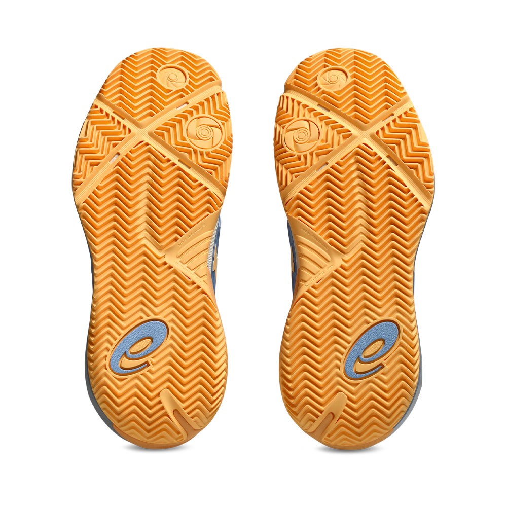 La suola full-length da padel assicura contatto continuo col terreno e aderenza grazie al design con pivot point e tecnologia X-GROOVE. Testata all’ISS in Giappone, integra gomma AHARPLUS e protezione PGUARD per una durata superiore, con ampio uso di materiali riciclati per ridurre acqua ed emissioni nella produzione.