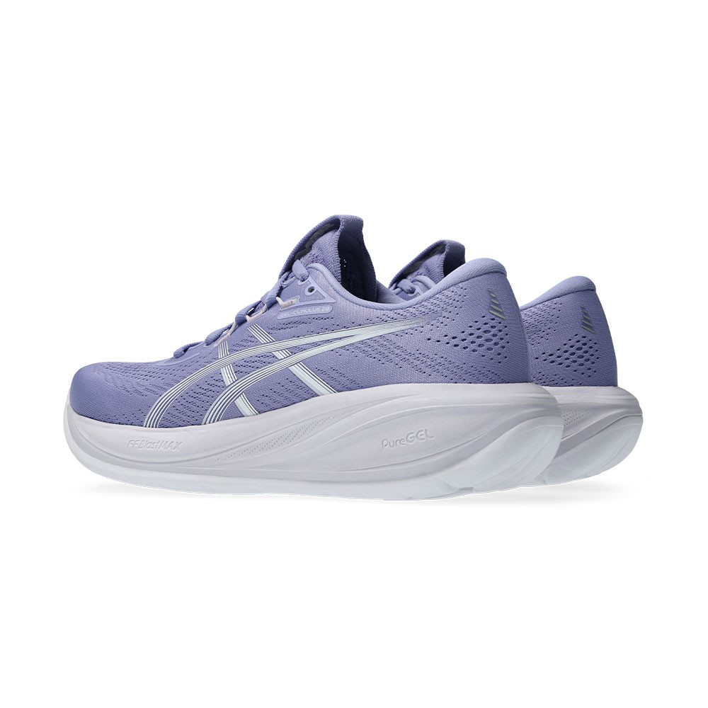 La suola FLUIDRIDE garantisce una transizione fluida dal tallone all’avampiede, mentre la gomma AHAR™ LO contribuisce a trazione e durata. Con drop di 8 mm e peso di soli 223 g, GEL-Cumulus 28 accompagna la corsa con equilibrio e affidabilità.