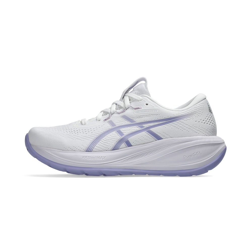 La suola FLUIDRIDE garantisce una transizione fluida dal tallone all’avampiede, mentre la gomma AHAR™ LO contribuisce a trazione e durata. Con drop di 8 mm e peso di soli 223 g, GEL-Cumulus 28 accompagna la corsa con equilibrio e affidabilità.