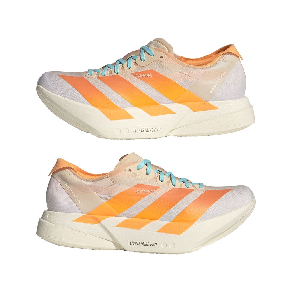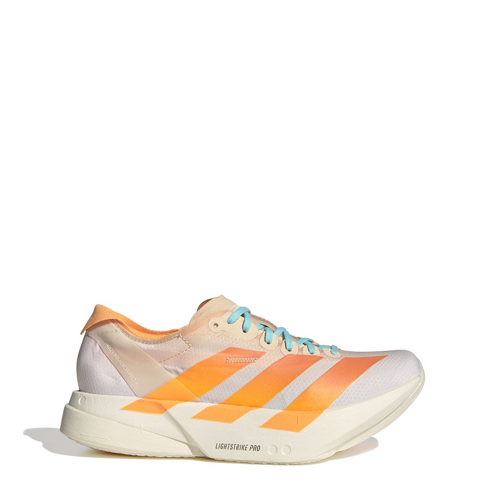 Progettate per le maratonete e le runner più esigenti, le Adizero Adios Pro 4 sono il top della linea racing di casa Adidas. L’intersuola con doppio strato Lightstrike Pro garantisce un'ammortizzazione eccezionale, mentre il nuovo profilo basculante migliora l'economia della corsa su ogni distanza.