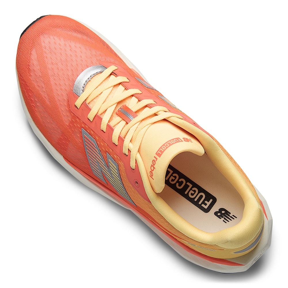 Le FuelCell Rebel v5 sono progettate per offrire un look dinamico e una corsa energica. La tomaia in mesh affusolata, ispirata al mondo racing, si abbina a una geometria dell’intersuola ancora più pronunciata, creando una scarpa da allenamento quotidiano dal carattere moderno e distintivo.