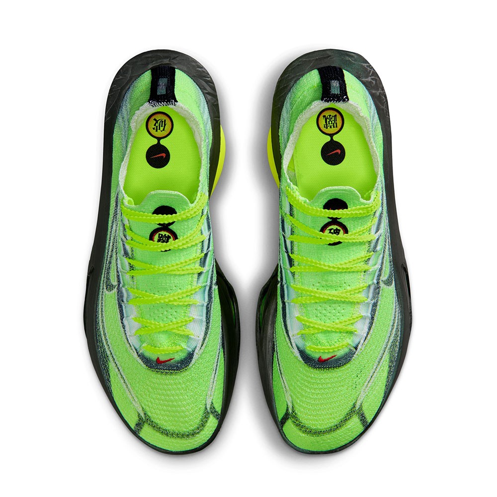 La tomaia in AtomKnit offre traspirabilità e contenimento ottimale, adattandosi perfettamente al piede, mentre i filati morbidi assicurano comfort e leggerezza per tutta la gara. Le due unità Air Zoom nell’avampiede immagazzinano e restituiscono energia a ogni passo, creando una sensazione di spinta continua e dinamica, ideale per le lunghe distanze.