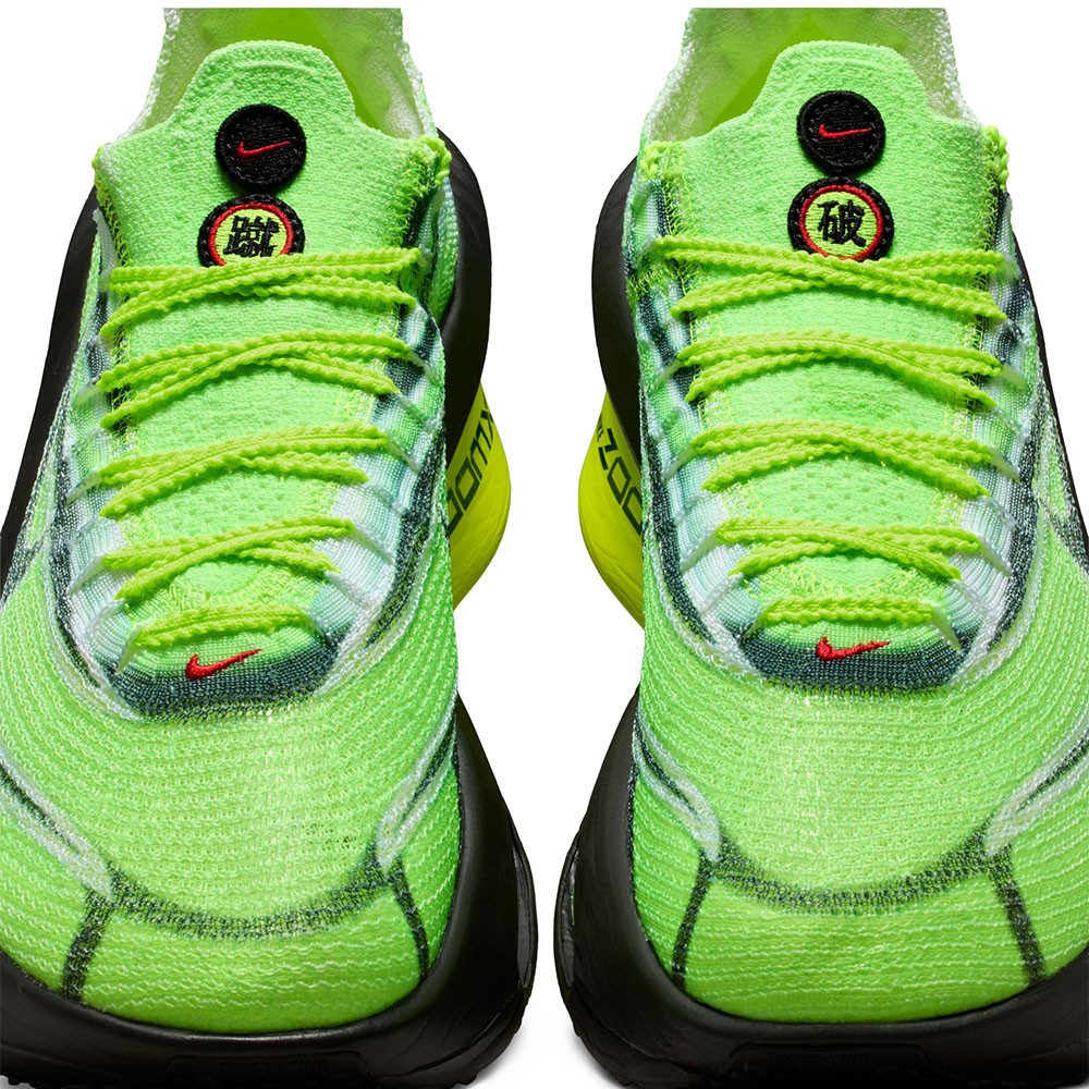 L’intersuola in schiuma ZoomX, completamente integrata con la suola, garantisce un’ammortizzazione ultraleggera e reattiva, mentre la piastra in fibra di carbonio Flyplate a tutta lunghezza, leggermente più ampia, migliora la stabilità e la propulsione. I lacci dentellati e la linguetta imbottita riducono la pressione sul dorso del piede, offrendo una calzata precisa e confortevole anche durante gli sforzi più intensi.