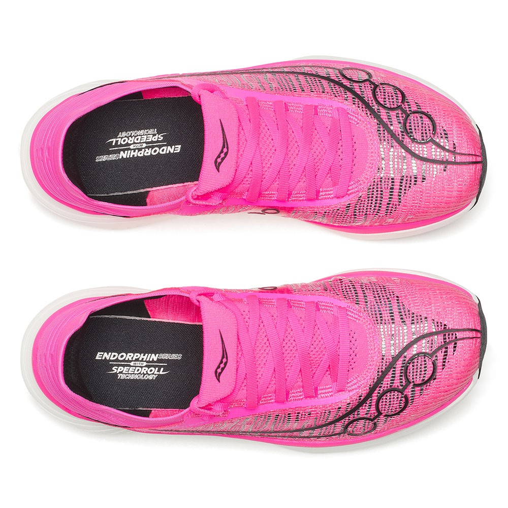 La tomaia in knit e mesh ultraleggera è progettata per massimizzare traspirabilità e comfort, riducendo il peso complessivo della scarpa. Le Endorphin Elite 2 rappresentano la scelta ideale per runner competitivi alla ricerca di performance senza compromessi.