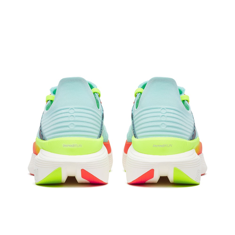 Il cuore della scarpa è l’ammortizzazione IncrediRUN, una superfoam di nuova generazione che assicura un ritorno di energia straordinario e una sensazione di rimbalzo mai provata prima. La piastra in fibra di carbonio a tutta lunghezza favorisce transizioni fluide e una propulsione potente durante la fase di spinta.