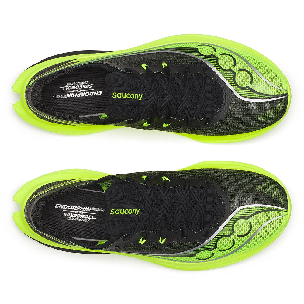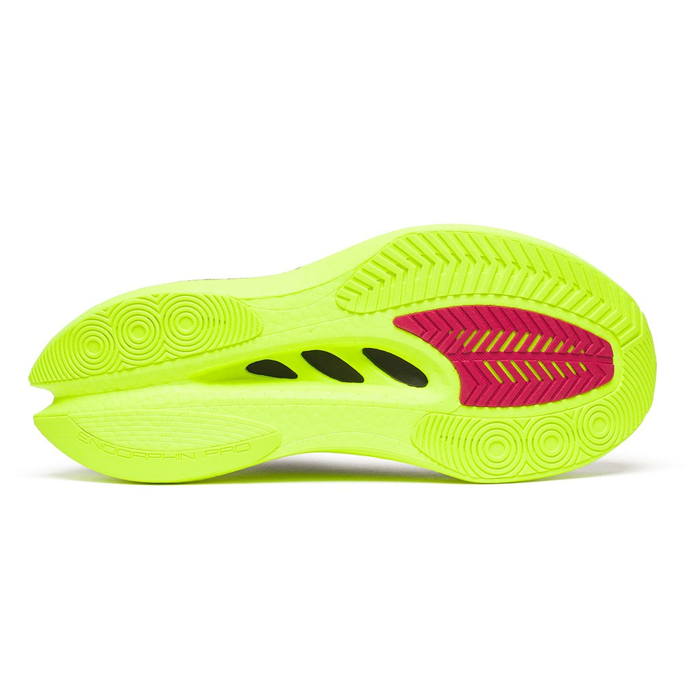 La suola in gomma PWRTRAC con mescola XT-900 assicura trazione affidabile e maggiore resistenza all’abrasione, anche sulle lunghe distanze di gara. Le Endorphin Pro 5 sono la scelta ideale per runner competitivi che cercano il massimo ritorno di energia il giorno della gara.