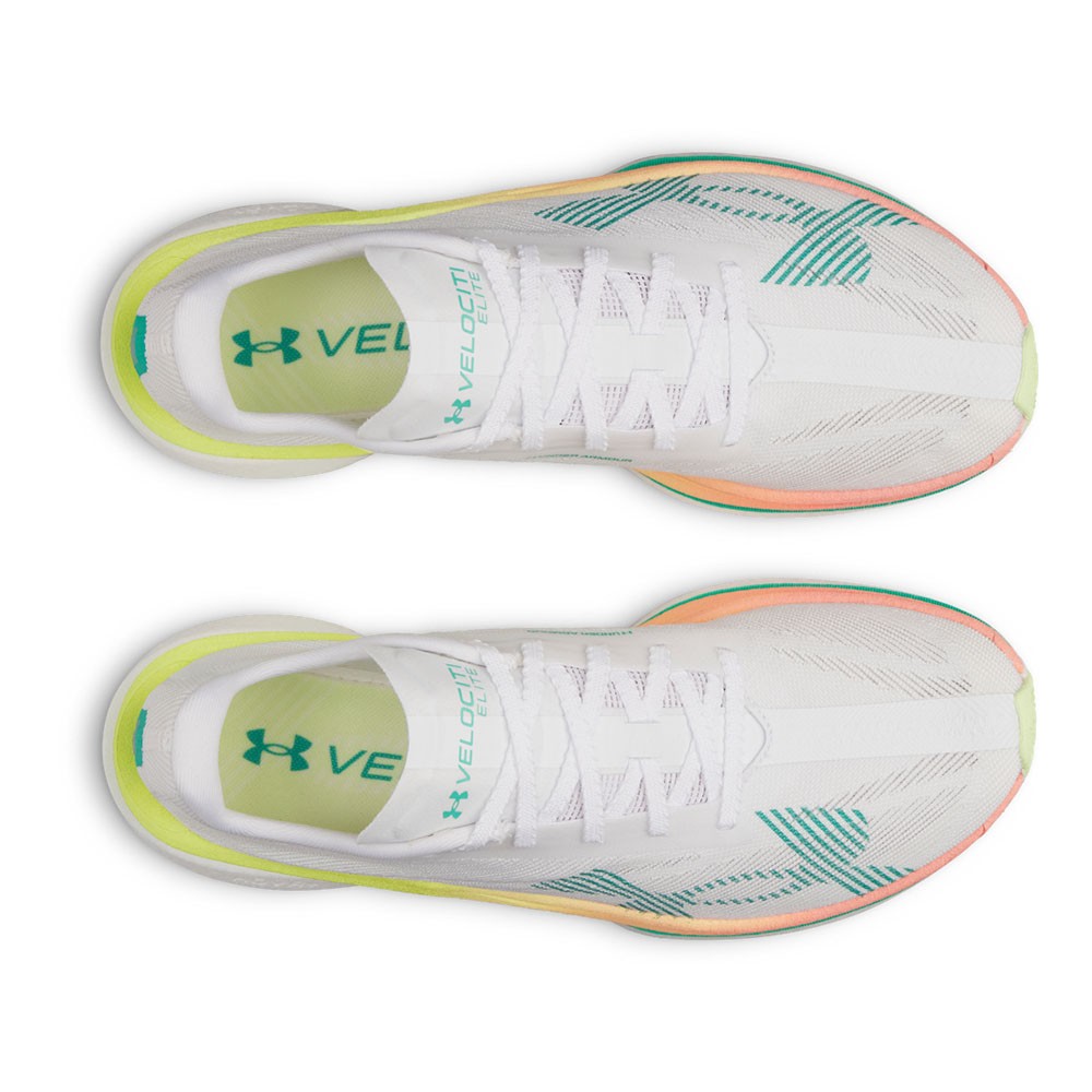 Testate da alcuni dei runner più veloci al mondo, le Velociti Elite sono pensate per raggiungere prestazioni da gara. Il piatto suola in fibra di carbonio a tutta lunghezza aggiunge esplosività a ogni falcata, favorendo una spinta potente e continua.