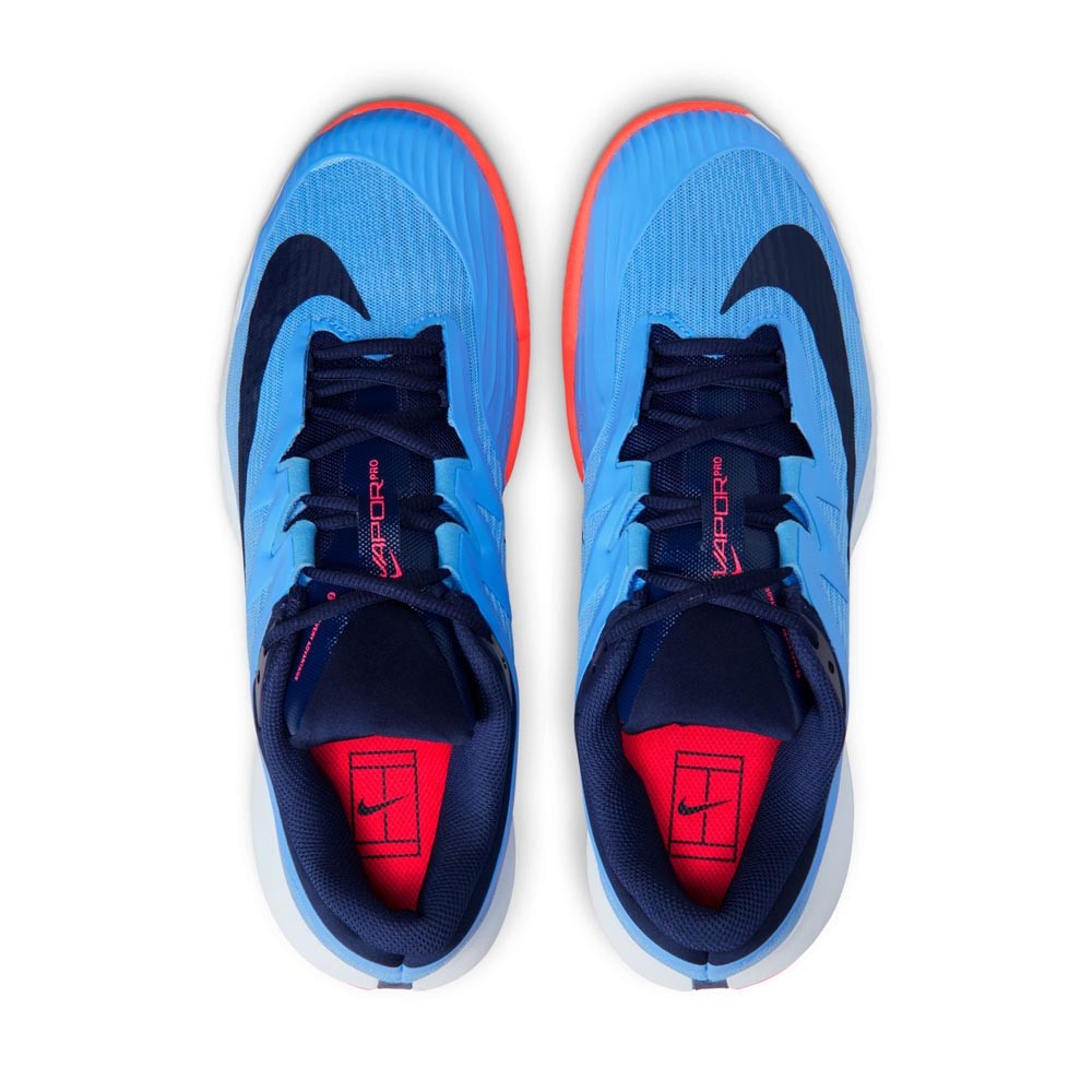 Raggiungi ogni palla con la sicurezza di una scarpa nata per la competizione. Le scarpe tennis Vapor Pro 3 migliorano la tua esperienza sulla terra rossa grazie a una suola che non trattiene detriti e offre grip eccezionale. L'avampiede più flessibile e l'ammortizzazione Air Zoom strategica ti garantiscono scatti esplosivi e frenate controllate, mentre la calzata avvolgente ti supporta nei match più intensi.