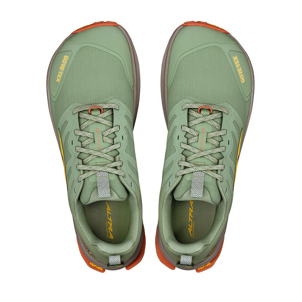 La tomaia GORE-TEX Invisible Fit, impermeabile e leggera, unisce mesh strutturato e traspirabilità per una calzata precisa e duratura. L’intersuola Altra EGO™ garantisce un’ammortizzazione reattiva e una connessione naturale con il terreno, ideale sia nel trail running sia nel trekking.