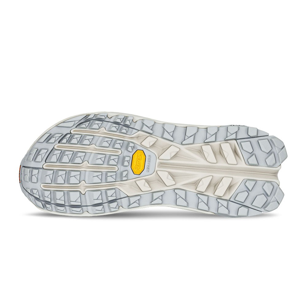La suola in Vibram® Megagrip, con scanalature ottimizzate, offre trazione affidabile, stabilità e resistenza all’usura su superfici tecniche. Il puntale con Original FootShape Fit lascia spazio naturale alle dita e al mesopiede, migliorando controllo e sicurezza in ogni fase della corsa.