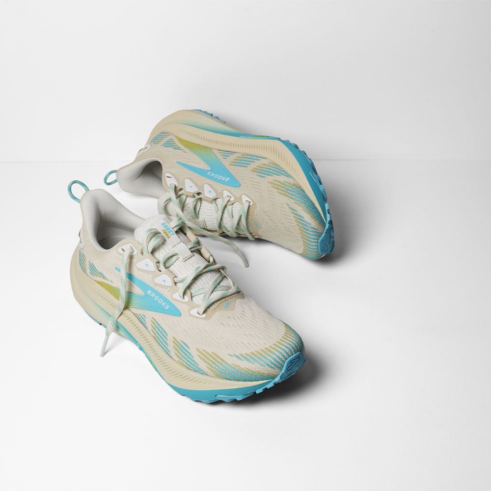 La tomaia in mesh traspirante avvolge il piede con leggerezza, offrendo una sensazione di sicurezza e ventilazione costante. Perfette per chi vuole una scarpa trail running Brooks versatile, pronta per ogni tipo di avventura.