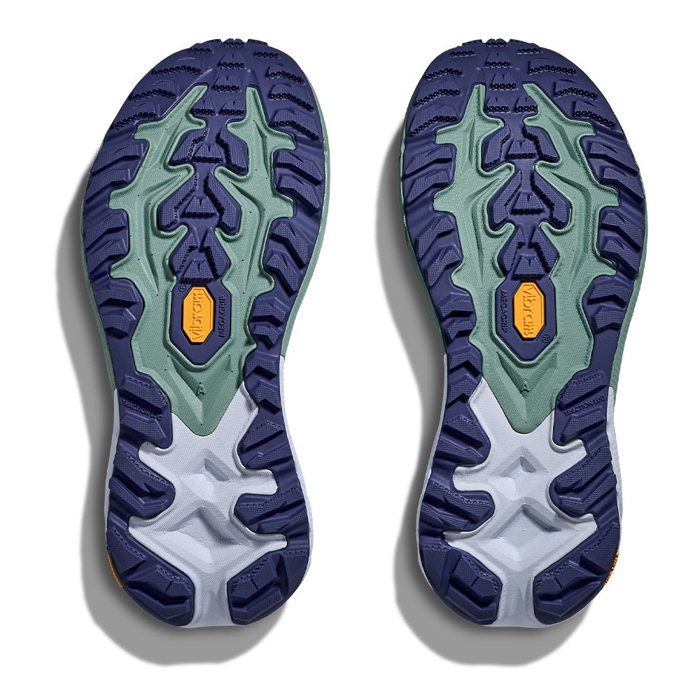 La tecnologia Rocker facilita una corsa più fluida, mentre la Vibram Megagrip con tasselli profondi garantisce aderenza su superfici instabili. Ideale per chi corre su sentieri tecnici, grazie anche alla possibilità di integrare una ghetta alla caviglia.