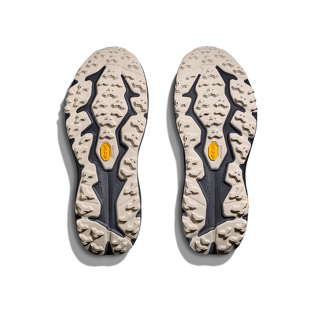 Sotto il piede, la suola Vibram® Megagrip con tecnologia Traction Lug assicura un grip eccezionale su ogni superficie. Una calzatura impermeabile, stabile e reattiva per correre in piena libertà, anche sotto la pioggia.