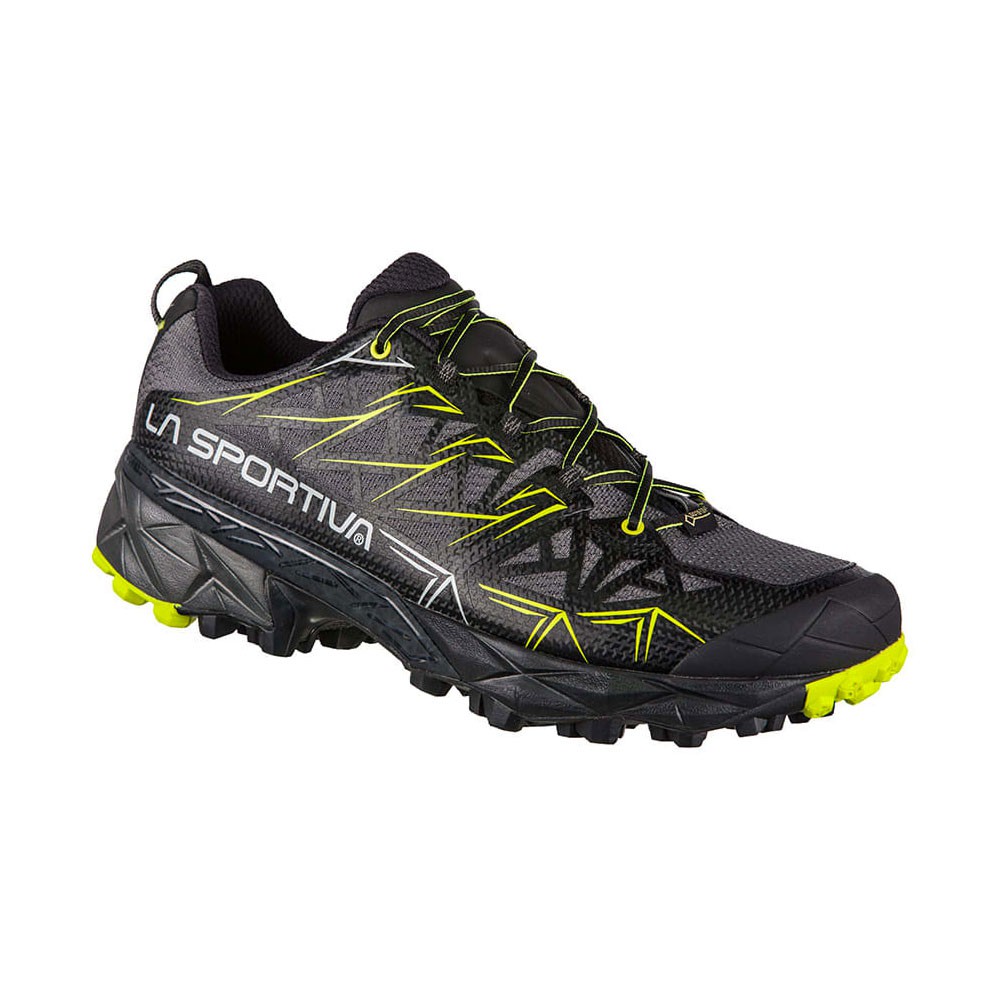 Le scarpe trail running Akyra sono impermeabili con membrana GORE-TEX ideale per correre in inverno. Scarpe trail La Sportiva con struttura protetta e adattata per Ultra Trail, Ultra Marathon e sessioni di allenamento prolungate. Le Akyra GORE-TEX sono particolarmente avvolgenti, comode e traspiranti.