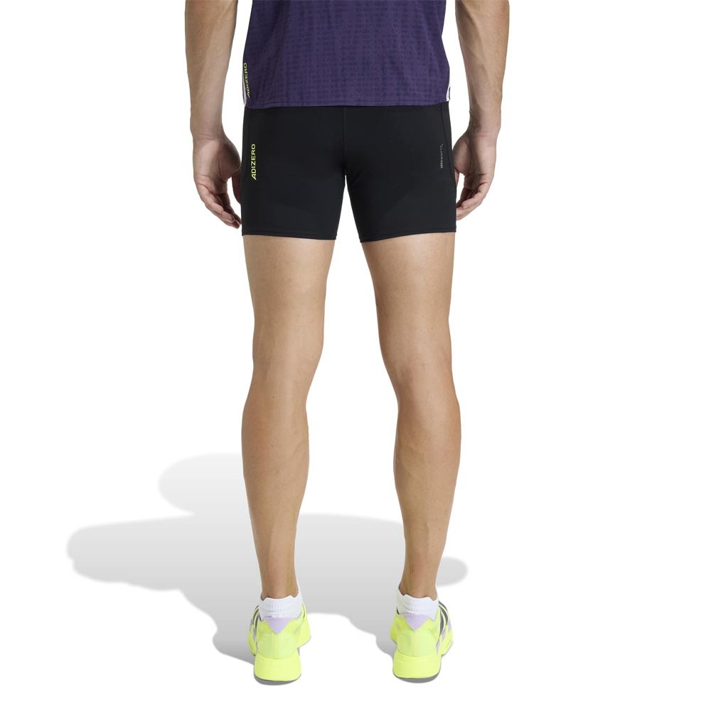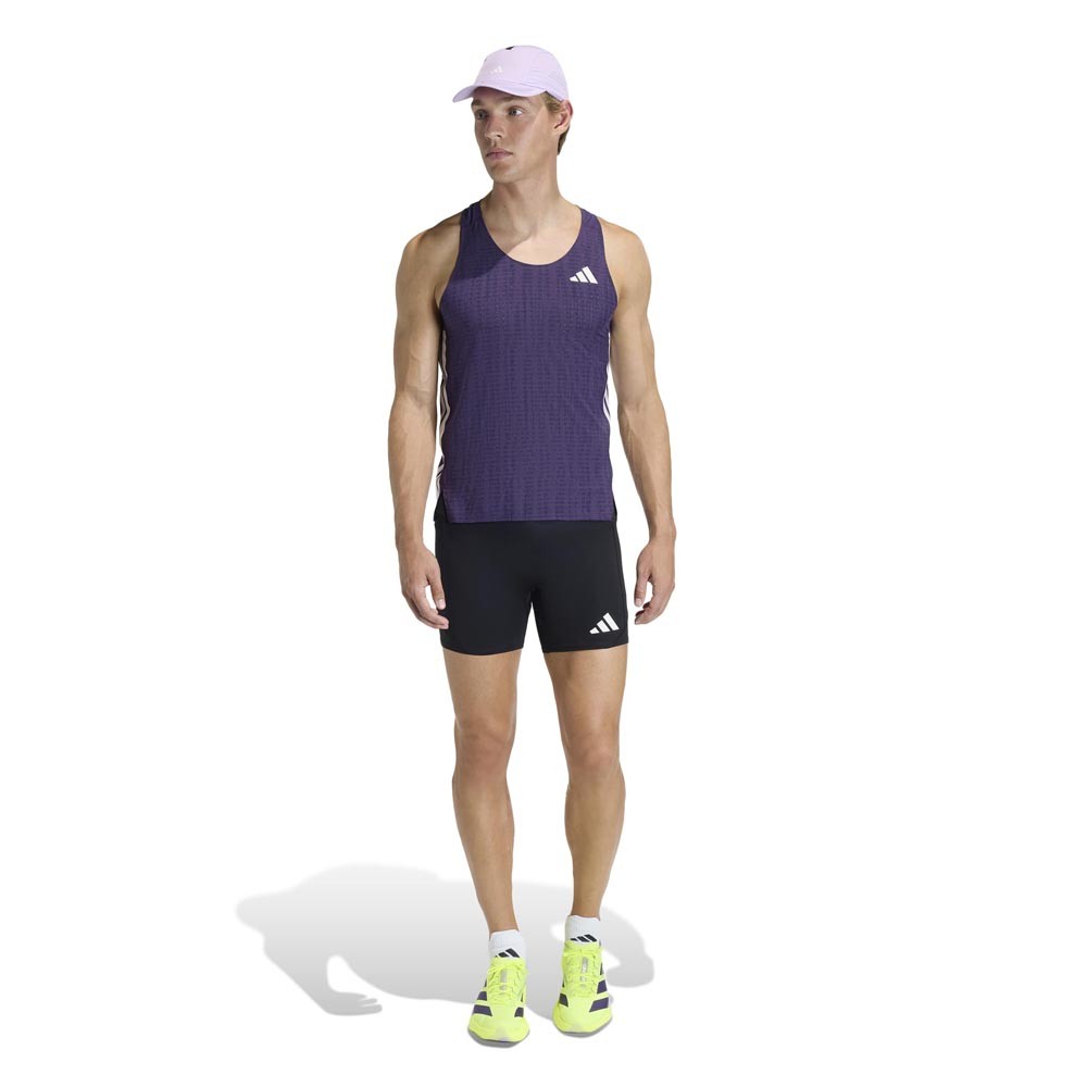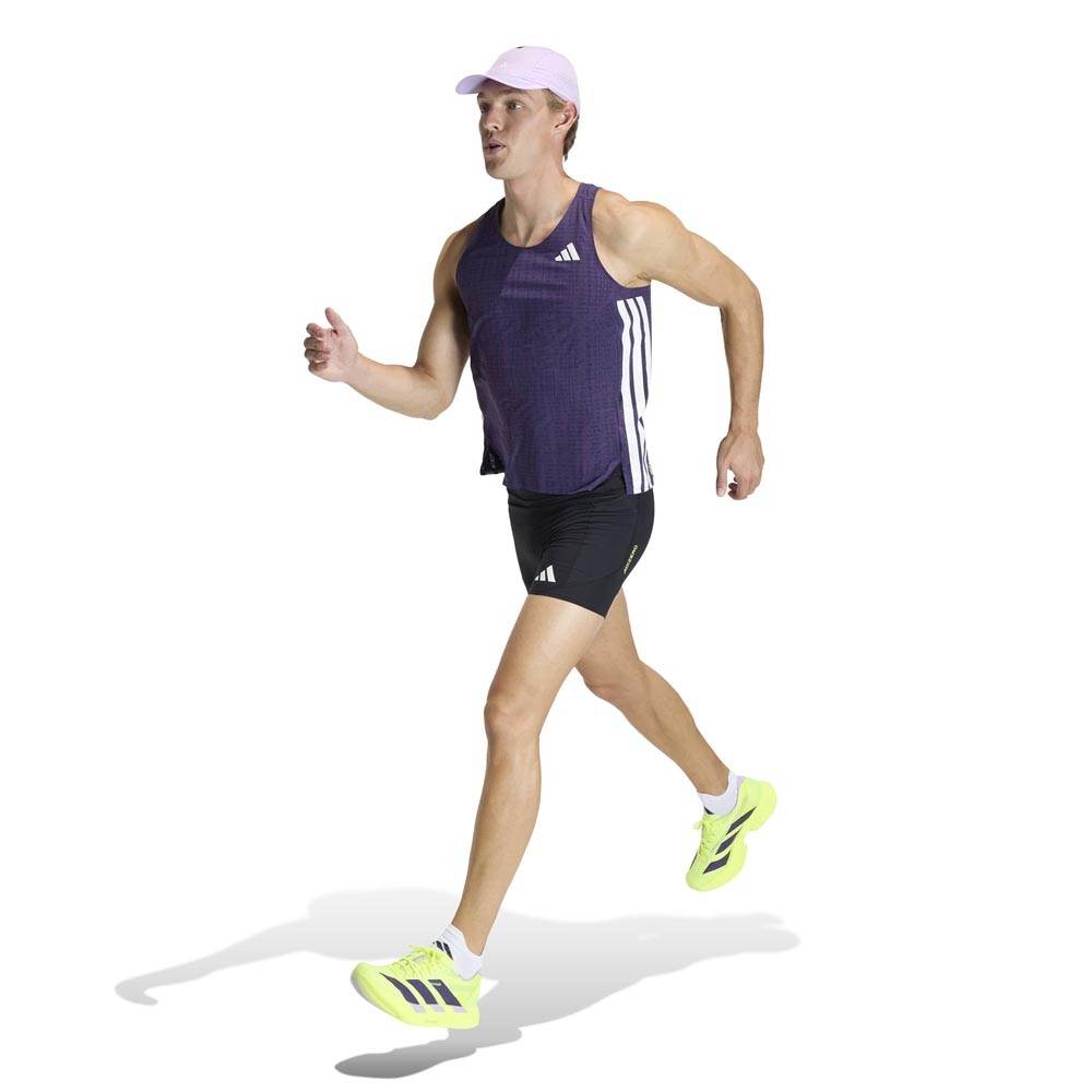 Il tessuto interlock morbido e leggero in poliestere riciclato ed elastan di questi Pantaloncini running si adatta al corpo con vestibilità attillata, mentre Climacool e le fibre ad asciugatura rapida mantengono una sensazione di fresco fino al recupero. La vita elastica incollata con coulisse include tre tasche interne per gel e card, affiancate da due tasche esterne per chiavi e telefono, il tutto completato da 3 Strisce bold e dettagli riflettenti Adizero.