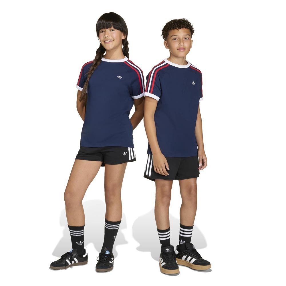 Adidas Originals shorts sportivi Tristripe blu bambino, short 3 Stripes in spugna con cordino per uso quotidiano. Adidas Originals shorts sportivi...