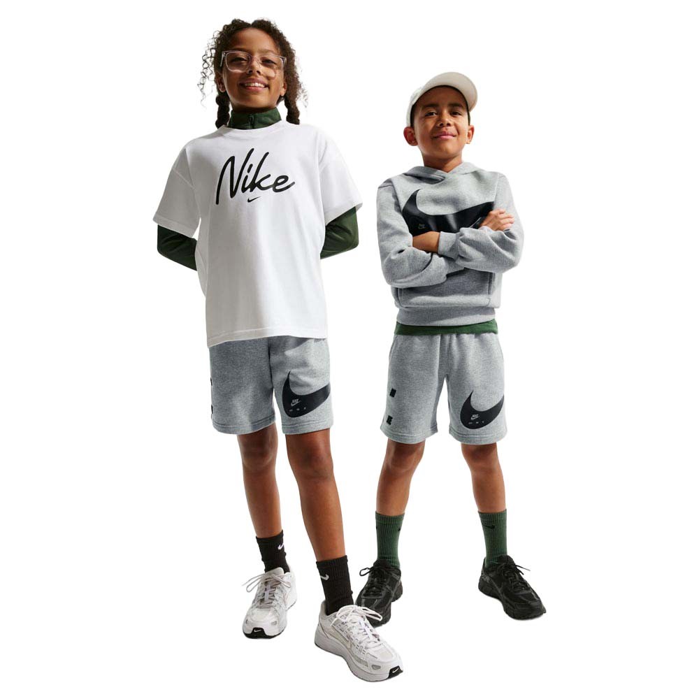 Comfort sportivo in perfetto stile Nike per ogni stagione, gli Shorts Nike Sportswear Club Big Swoosh bambino Grigio in 80 per cento cotone e 20 per cento poliestere French Terry con fleece non spazzolato leggero e traspirante accompagnano ogni giornata. Le due tasche per le mani e il laccetto per personalizzare il fit completano shorts che dimostrano come semplicità e stile Nike vadano sempre d accordo.