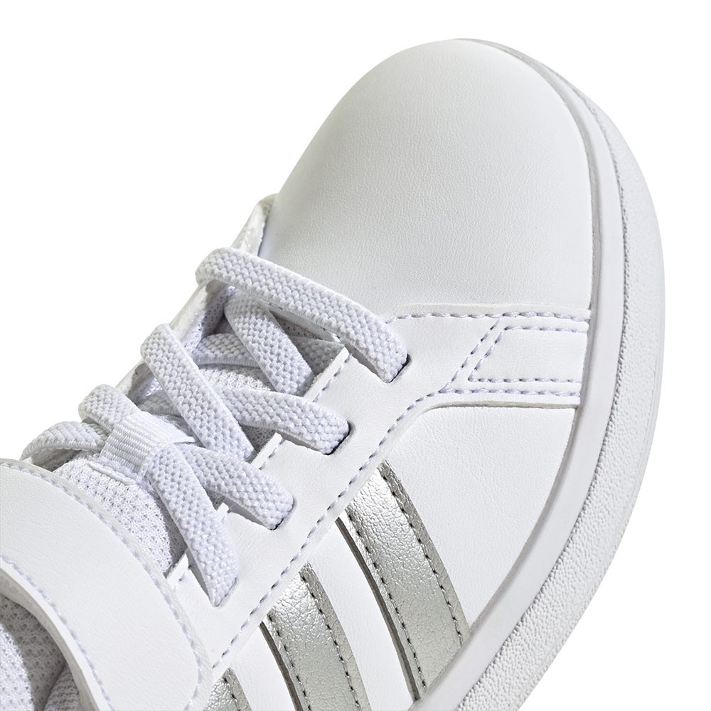 Tomaia in materiale sintetico riciclato con fodera soffice, lacci elastici e chiusura a strappo: calzata facile e stabile con qualità Adidas, ideali come sneakers da bambino.