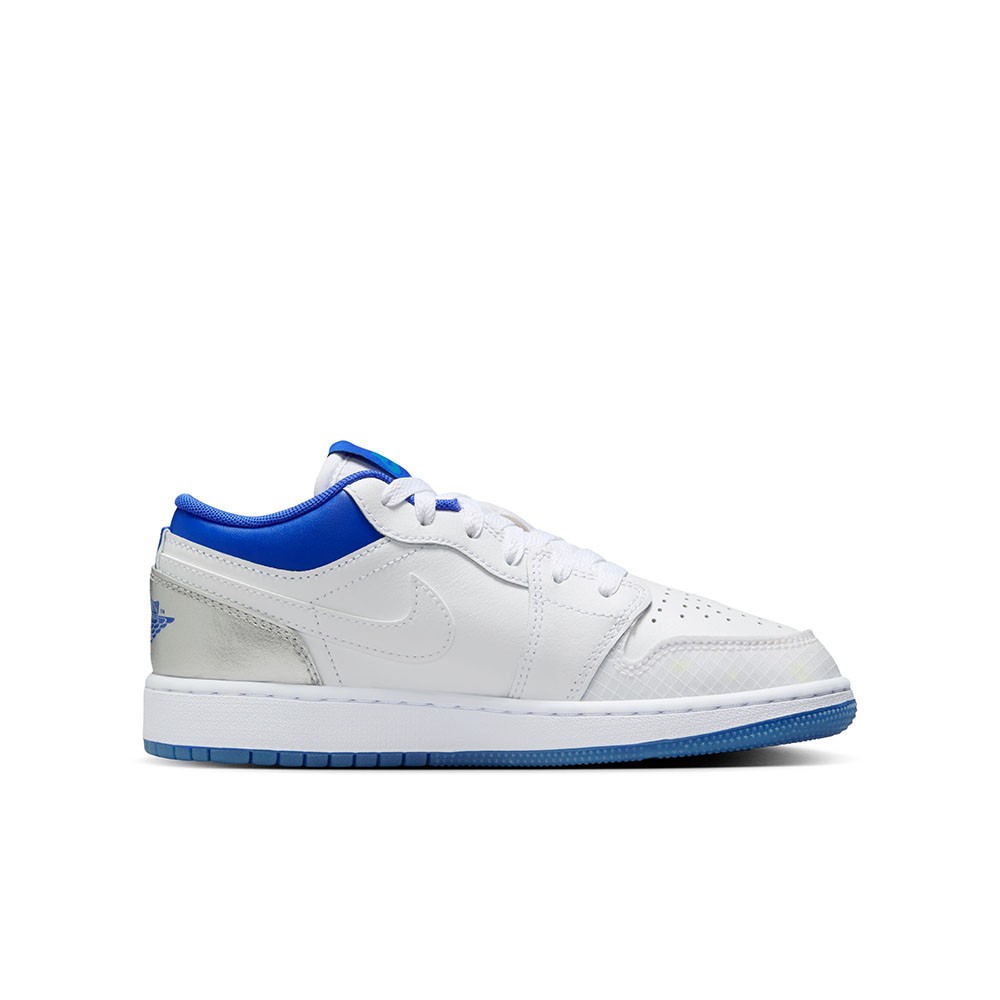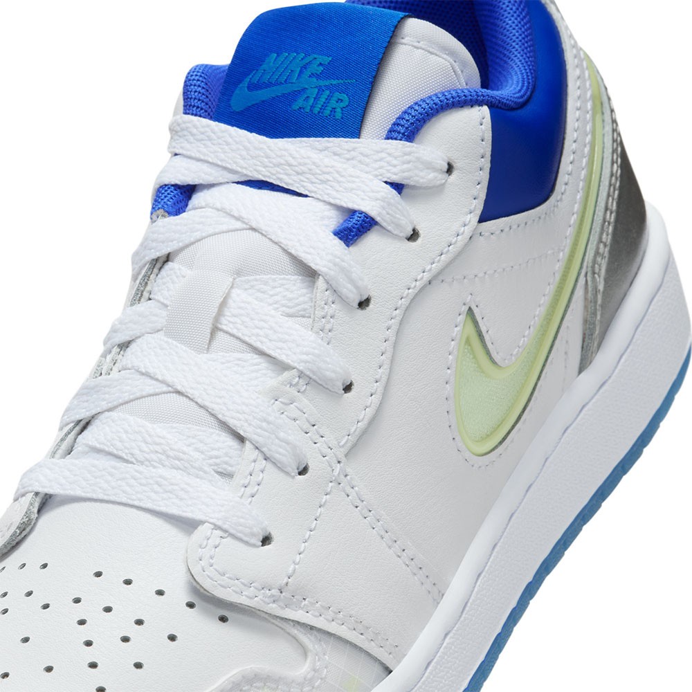 Le Nike Air Jordan 1 Low Sneaker School sono un tributo alla grinta di Michael Jordan. Il design unico con finiture in pelle metallizzata e dettagli brillanti trasmette la voglia di superare ogni limite, proprio come MJ.
