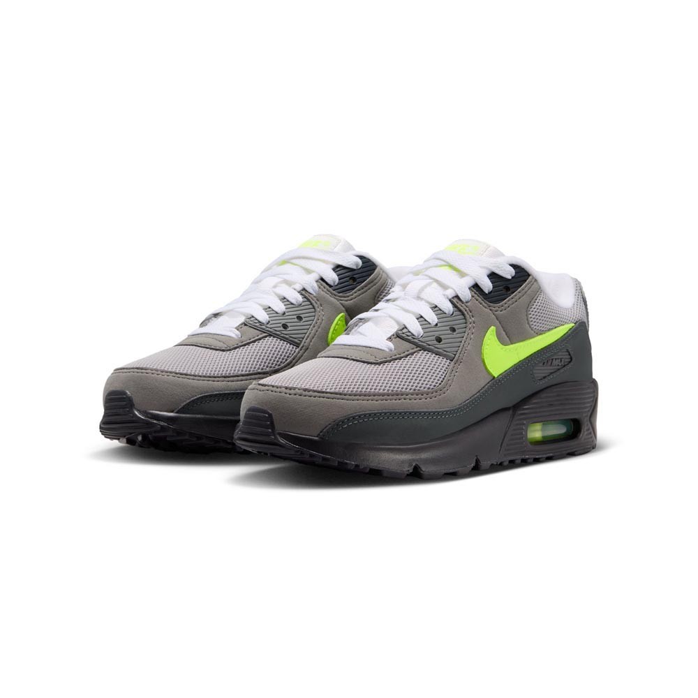 Porta l'energia del neon ai piedi dei tuoi ragazzi con questa versione audace delle sneakers Air Max 90. Progettata per offrire supporto e durata grazie alla tomaia in pelle mista, questa sneaker mantiene viva la tradizione del comfort Nike. L'unità Air visibile non è solo un dettaglio di stile, ma una garanzia di ammortizzazione leggera che accompagna ogni corsa, salto e gioco con sicurezza e grinta.