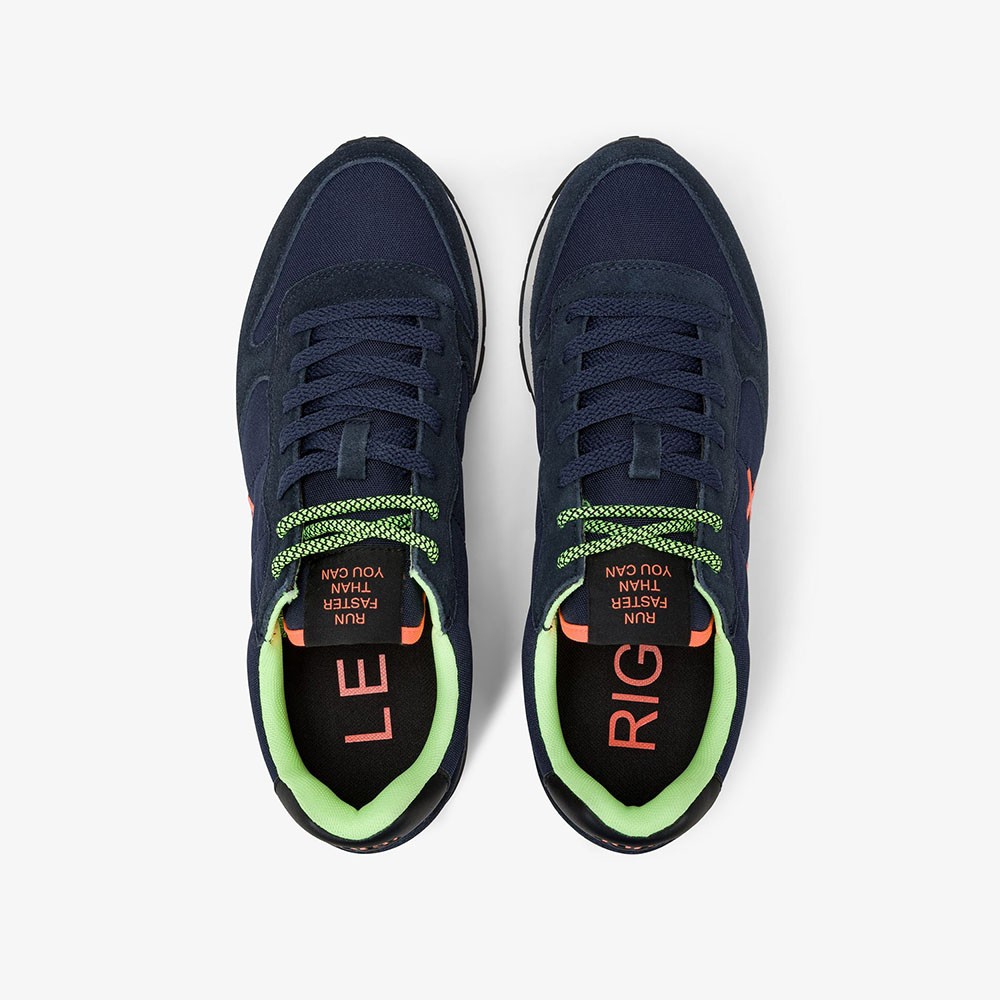 Tra forma e funzione, la Sneaker Tom rappresenta l’icona SUN68 reinterpretata in chiave moderna. Il design running incontra un’estetica urbana, arricchita da dettagli fluo che donano carattere e riconoscibilità.