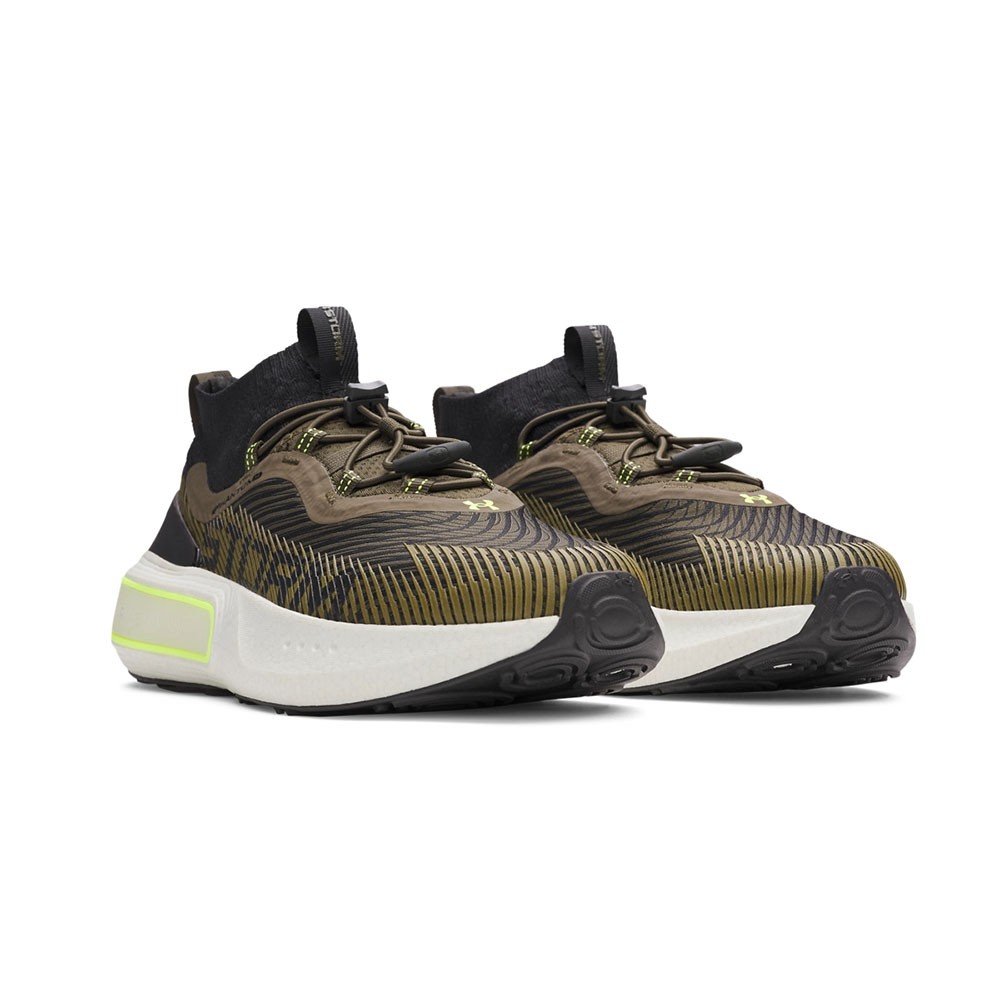 Il jacquard tecnico con stampa grafica 3D riflettente aggiunge un tocco distintivo e migliora la visibilità in condizioni di scarsa illuminazione. All’interno, la soletta morbida e sagomata avvolge il piede in un comfort prolungato, mentre l’ammortizzazione UA HOVR™ assorbe gli impatti e restituisce energia a ogni passo, migliorando la spinta e riducendo l’affaticamento.