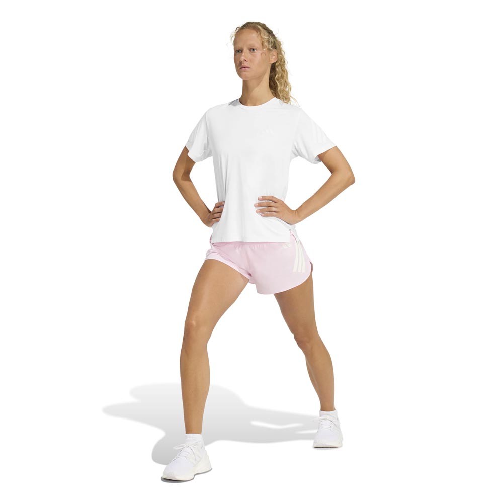 Pantaloncini running Adizero Essential rosa da donna, leggeri e morbidi, pensati per aiutarti a raggiungere più in fretta i tuoi obiettivi. Pantaloncini running Adizero...