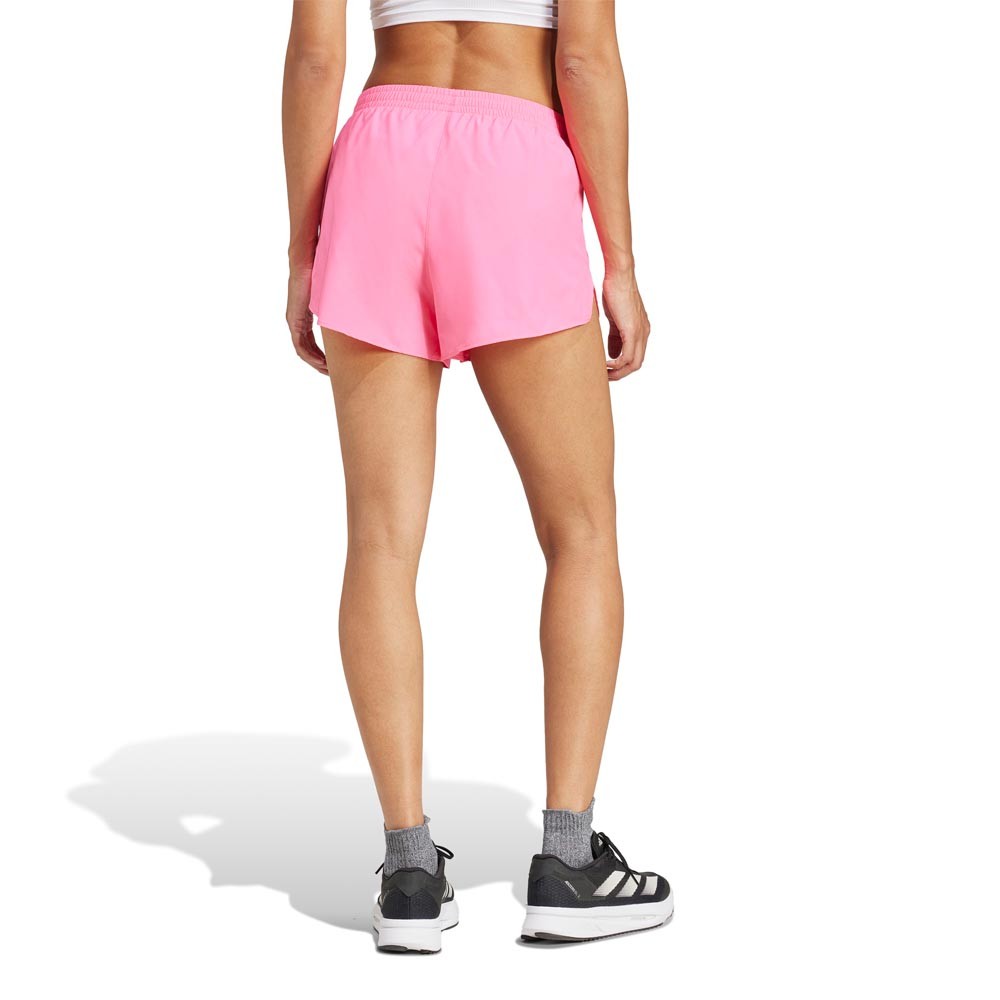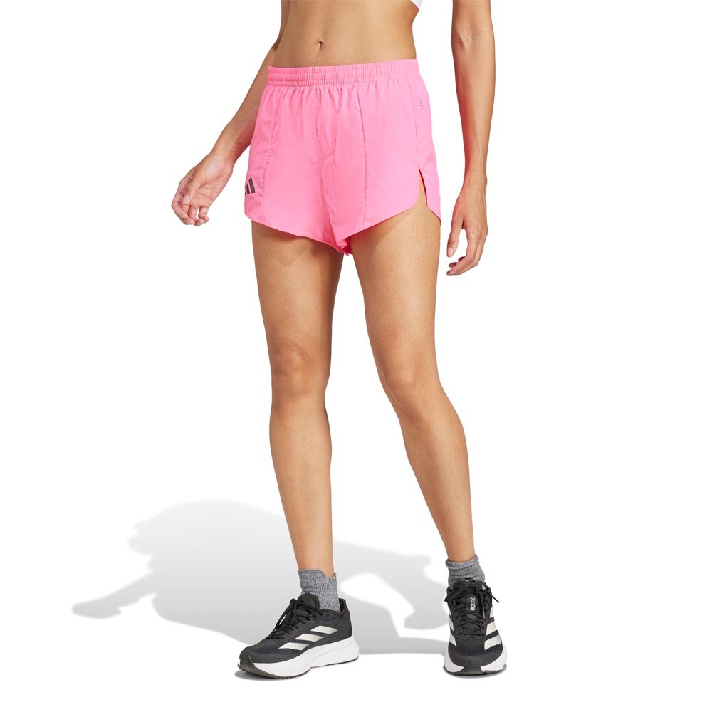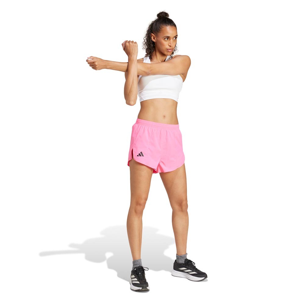 Pantaloncini running Adizero Essential rosa da donna, leggeri e morbidi, pensati per aiutarti a raggiungere più in fretta i tuoi obiettivi. Pantaloncini running Adizero...