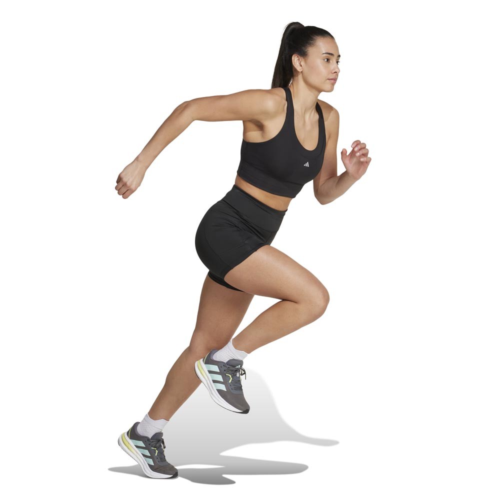 Pantaloncini running ADIDAS OTR B neri da donna, perfetti per le tue corse. Il tessuto Adiflex, con tecnologia AEROREADY, allontana l'umidità, garantendo comfort e freschezza. La vestibilità aderente e il giro vita elasticizzato offrono massima libertà di movimento. Tasche laterali per riporre oggetti essenziali. Realizzati con almeno il 70% di materiali riciclati.