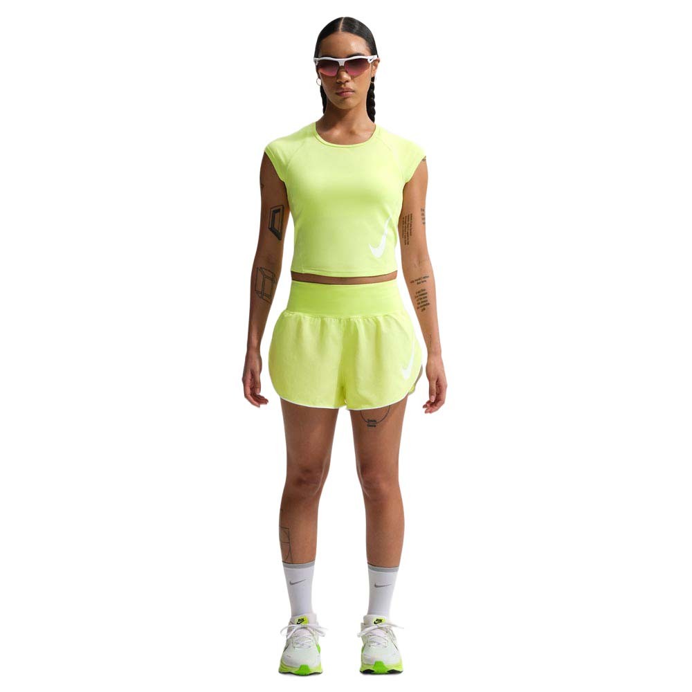Pantaloncini running Nike Tempo Flow Swoosh Lt Lemon da donna, vita media, ultraleggeri e freschi, pensati per falcate ampie e libere. Pantaloncini running Nike Tempo Flow...