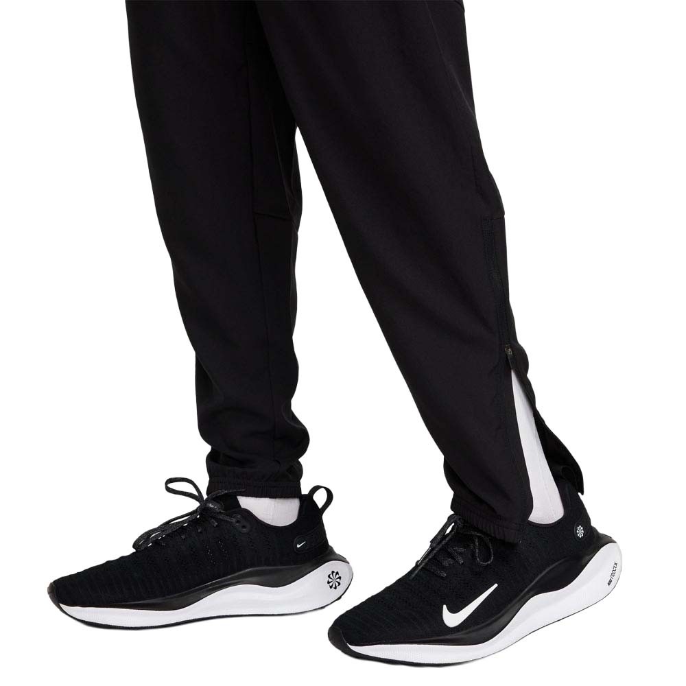 Il tessuto in poliestere con tecnologia Dri-FIT di questi Pantaloni running allontana il sudore per mantenere la pelle asciutta, mentre i bordi con zip facilitano indosso e rimozione sopra altri strati. Le due tasche laterali custodiscono gli oggetti indispensabili, e la tasca posteriore per dispositivi multimediali, posizionata al centro della schiena, è abbastanza grande per lo smartphone, completata da elastico e coulisse in vita e dettagli rifrangenti.