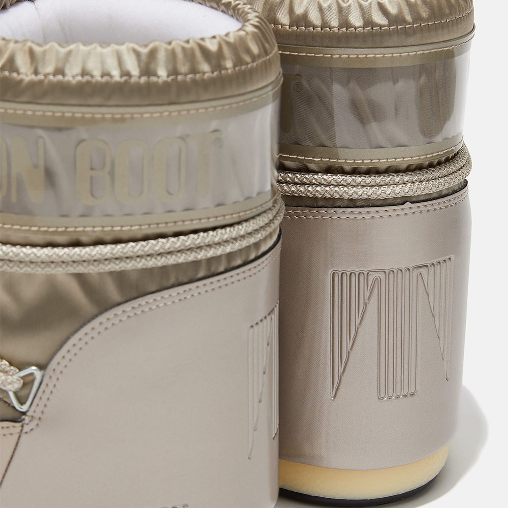I Moon Boot Icon Satin prendono ispirazione dall’estetica dell’equipaggiamento astronauta, unendo design iconico e materiali ricercati. La finitura satinata dona un look brillante e contemporaneo, mantenendo tutti i tratti distintivi del modello originale.