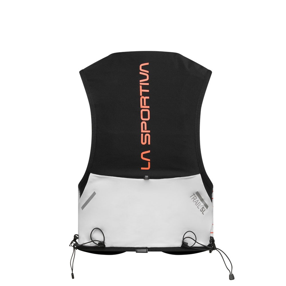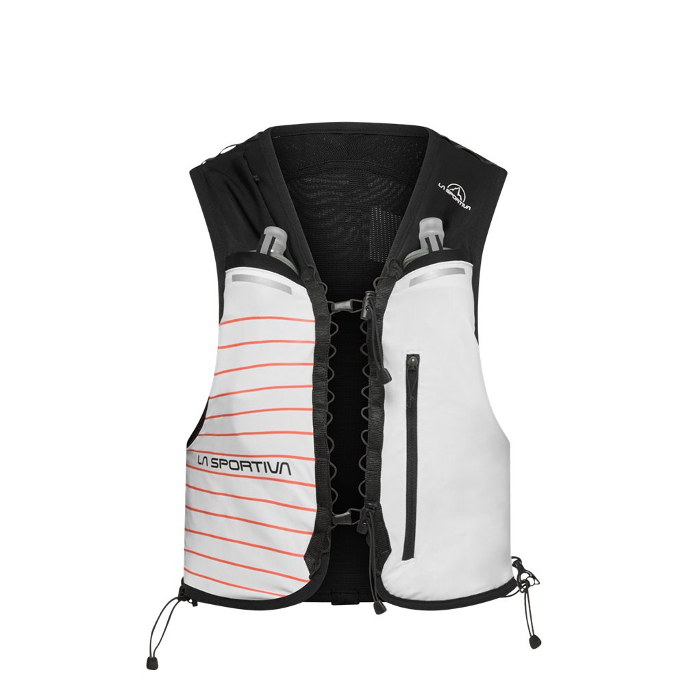 La costruzione aderente e i materiali leggeri garantiscono stabilità durante la corsa, mentre il pannello posteriore in mesh migliora la ventilazione. Le numerose tasche, tra cui quelle frontali per Soft Flask e il vano posteriore orizzontale, permettono un accesso rapido all’attrezzatura.