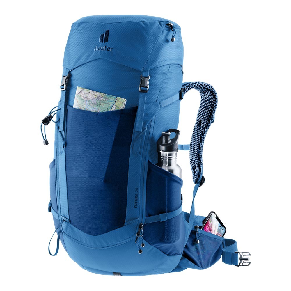 Ideale per escursioni giornaliere e trekking di più giorni, lo Zaino Trekking Deuter Futura 26 Nightblue Baltic con sistema dorsale Aircomfort e spallacci ActiveFit ventilati garantisce trasferimento ottimale del peso e ventilazione confortevole. Ampia apertura frontale a U tasche multiple portabastoncini rete casco adattabile scomparto biancheria bagnata e copertura antipioggia inclusa completano uno zaino affidabile per ogni avventura outdoor.