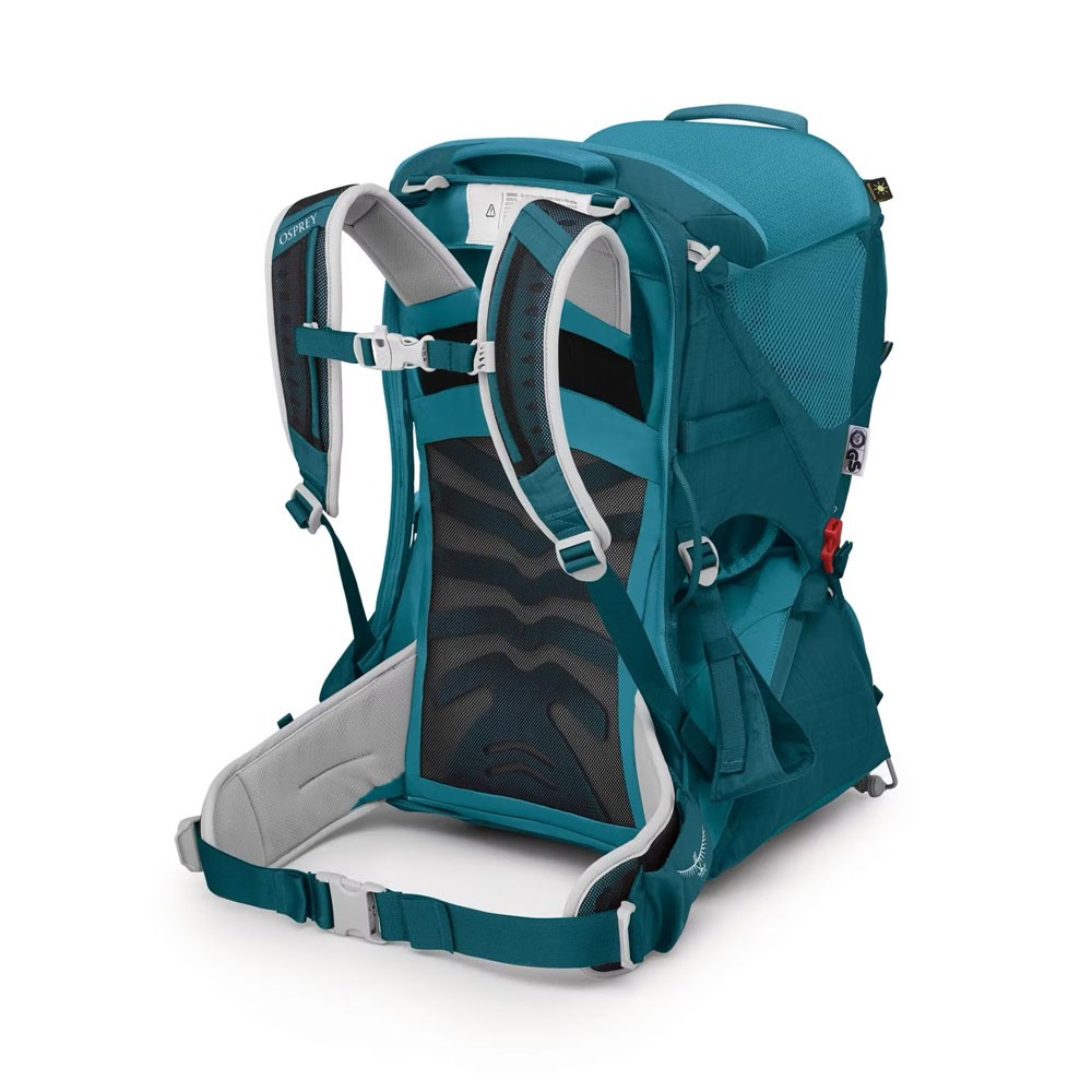 Grazie alla sospensione AirScape™, lo zaino porta bambini Osprey comodo offre una ventilazione eccellente, riducendo il sudore anche nelle giornate più calde. Il sistema di regolazione della lunghezza del busto consente una vestibilità personalizzata, garantendo stabilità e sicurezza sia per il genitore che per il bambino. Il parasole integrato UPF 50 assicura una protezione affidabile dai raggi solari.