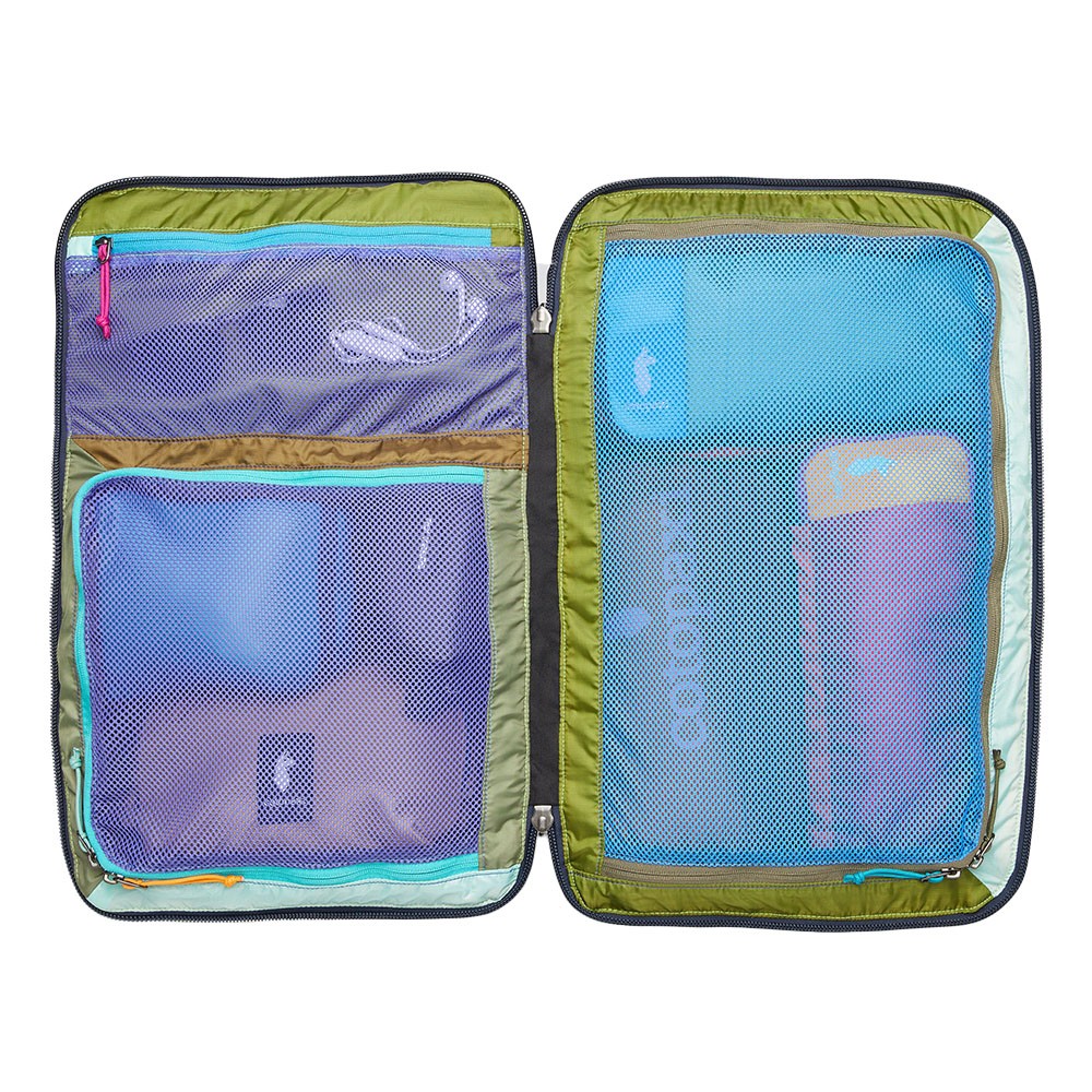 Ogni zaino Cotopaxi Allpa 35L Del Dìa Dark è un pezzo irripetibile, grazie all’uso di materiali di recupero e combinazioni di colori sempre diverse. Un design sostenibile che unisce unicità e funzionalità, rendendolo perfetto sia per l’avventura che per l’uso quotidiano.