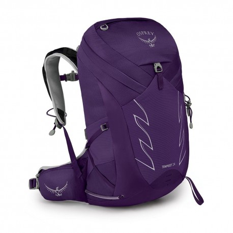 Zaino Trekking Osprey Tempest 24. Un pannello posteriore AirScape® stampato ad iniezione e un'imbottitura continua per cinghie e cintura lombare consentono allo zaino di muoversi con te mentre cammini o vai in bicicletta. Questo zaino Osprey è dotato di tasca per il serbatoio di idratazione e opzioni di montaggio per bastoni da trekking, piccozza da ghiaccio. Realizzato in nylon riciclato ad alta tenacità di alta qualità approvato bluesign® con rivestimento DWR privo di PFC